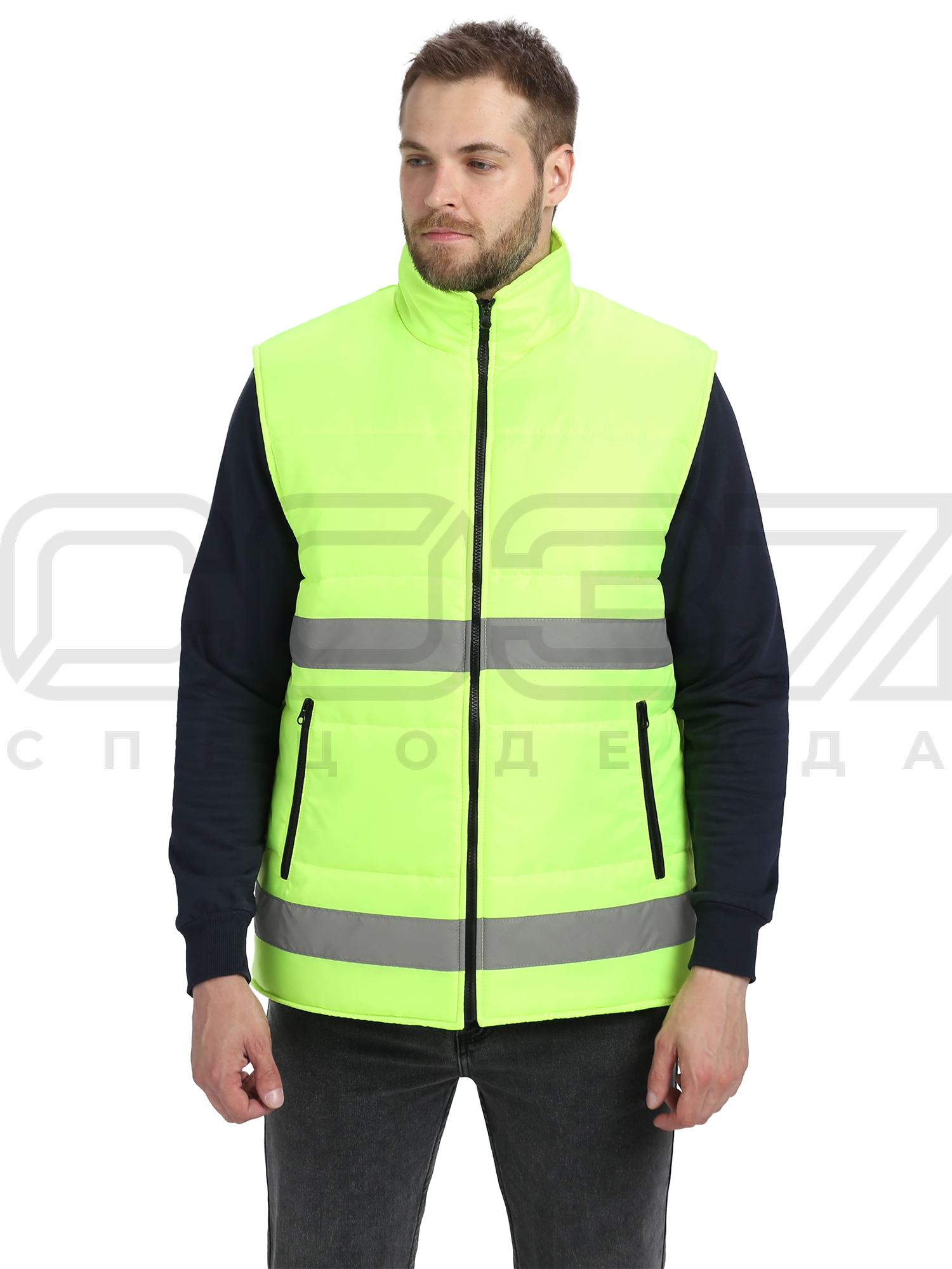 Жилет сигнальный утеплённый "Квазар" с СОП цв.лимонный тк.оксфорд в Екатеринбурге