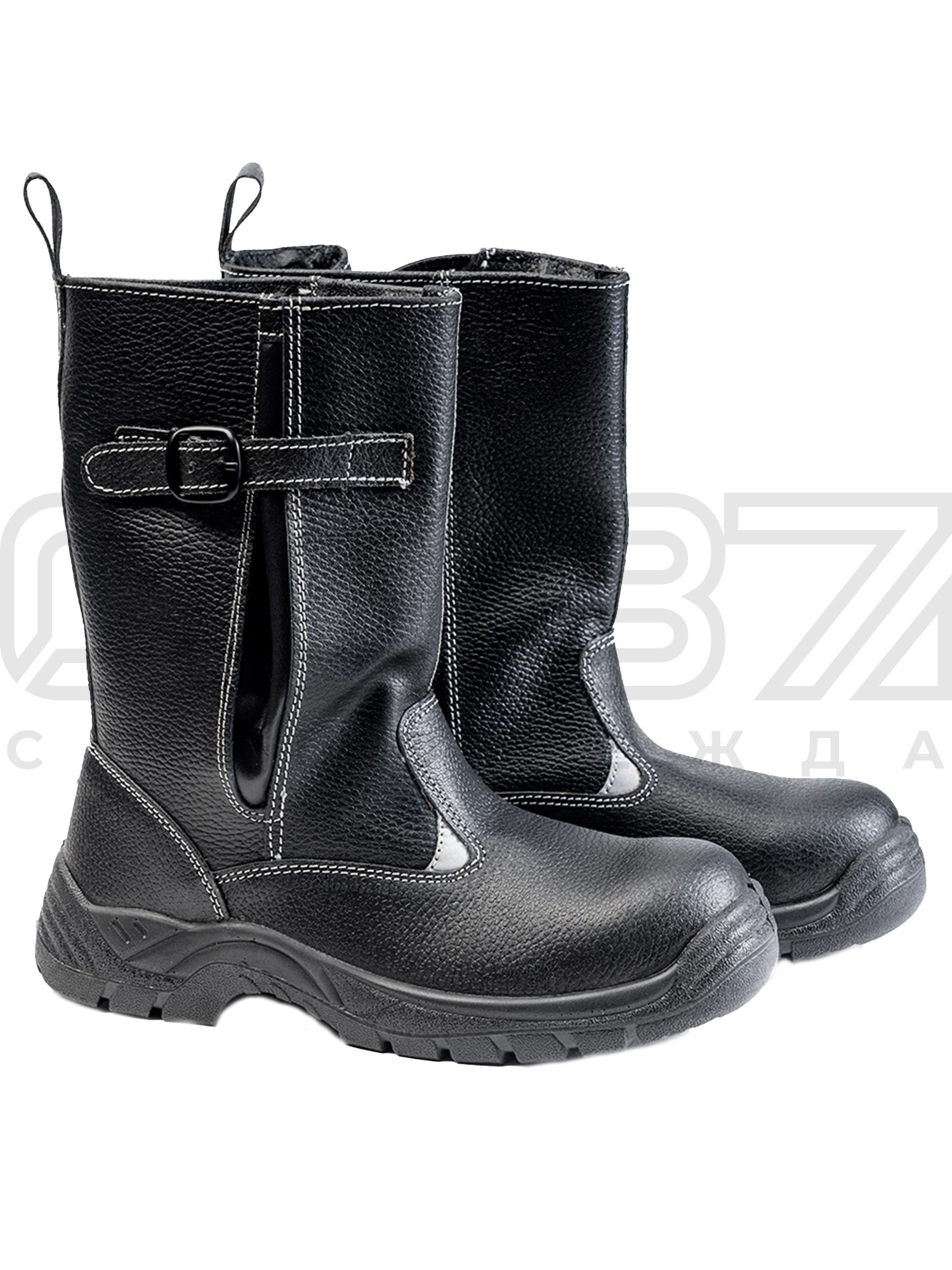 - Кожаный ремешок со стальной пряжкой-застёжкой регулирует голенище по объёму и надёжно фиксирует сапог на ноге.