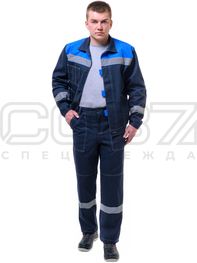 Костюм рабочий "Липецк" с СОП цв.т.синий/василёк тк.Барьер-1 (куртка+брюки) в Екатеринбурге