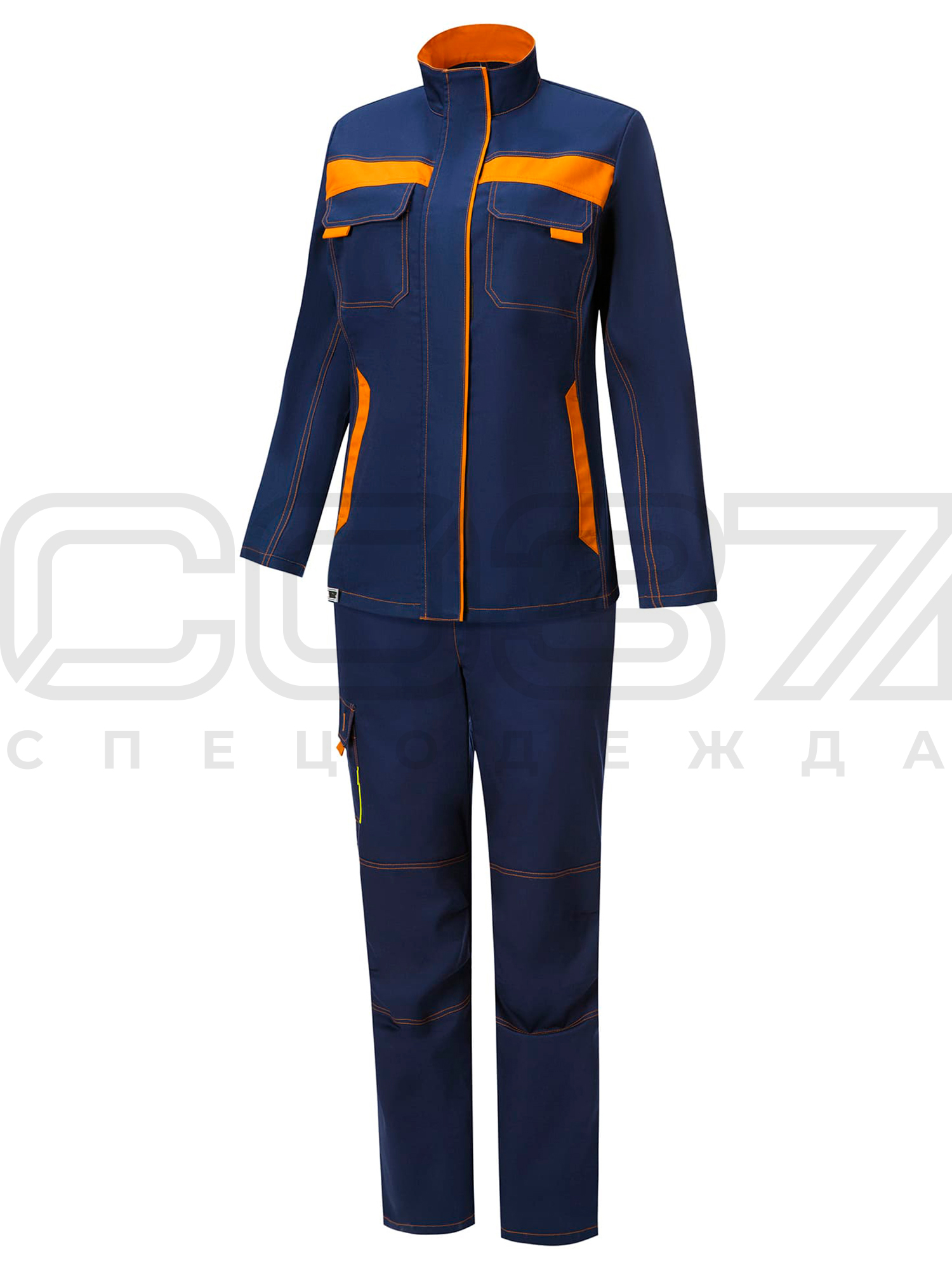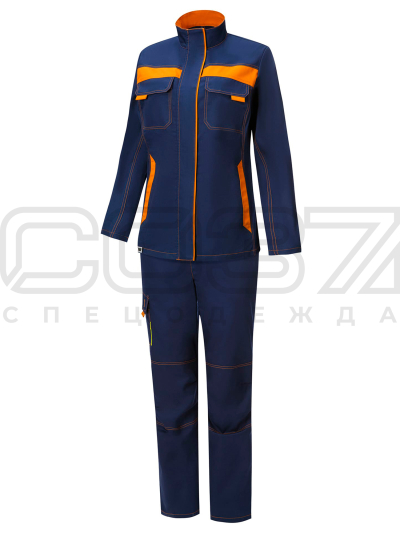 Костюм рабочий женский "Ордината" цв.т.синий/оранж тк.смесовая (куртка+брюки) в Екатеринбурге