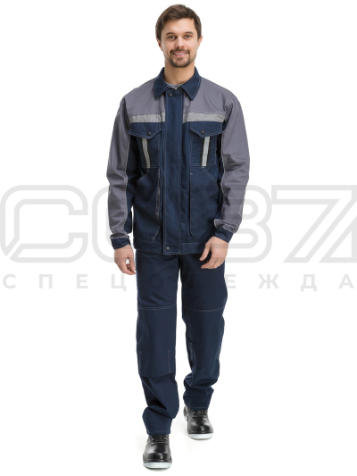 Костюм рабочий "Визон" с СОП цв.т.синий/серый тк.смесовая (куртка+брюки) в Екатеринбурге