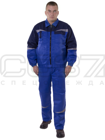 Костюм рабочий мужской "Дакота" с СОП цв.т.синий/василек тк.грета (куртка+пк) в Екатеринбурге