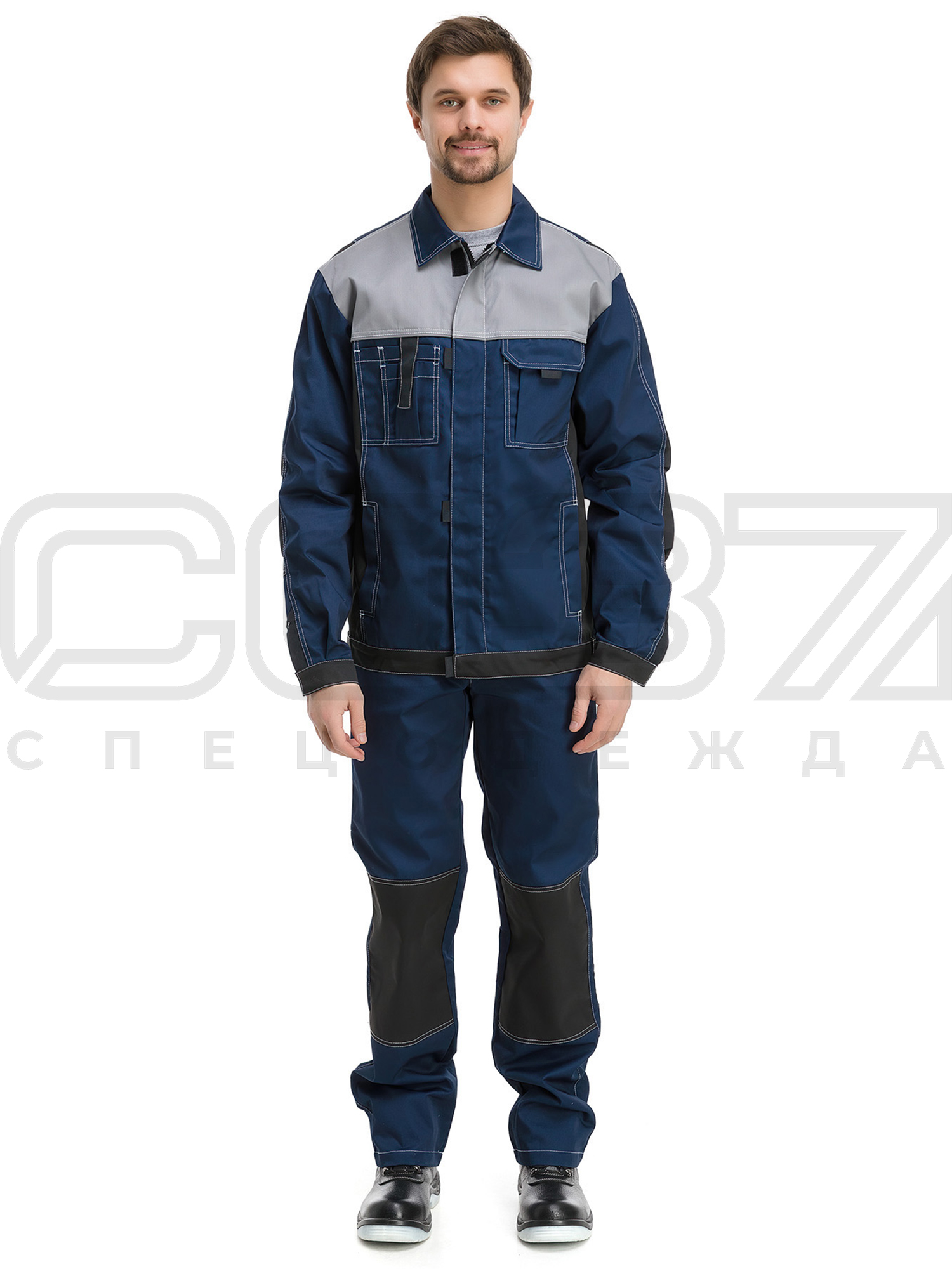 Костюм рабочий мужской "Айдахо" цв.т.синий/серый/черный тк.твил (куртка+пк) в Екатеринбурге