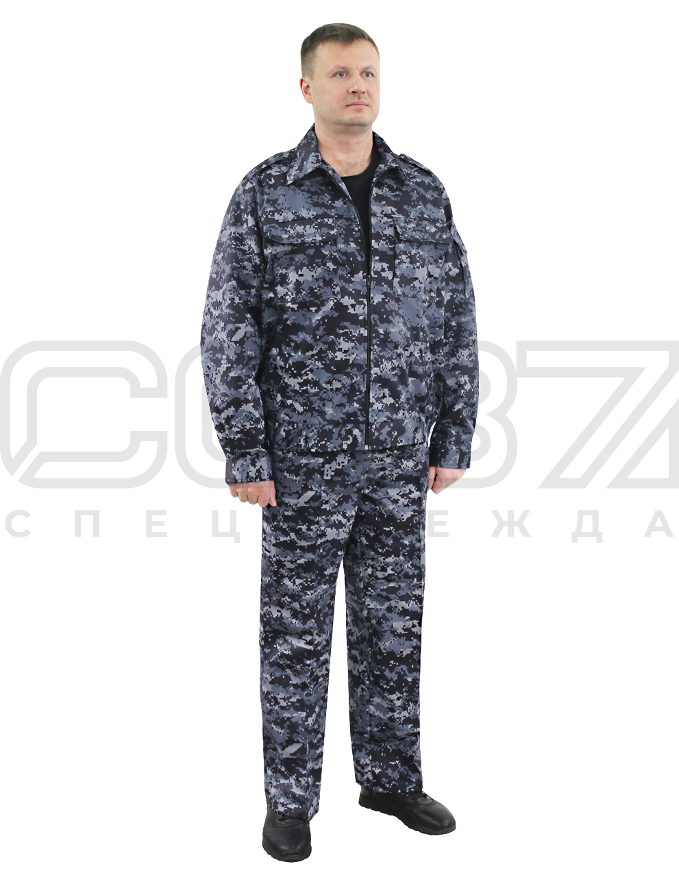 Костюм рабочий охранника "Омега" цв.цифра/синий тк.смесовая в Екатеринбурге