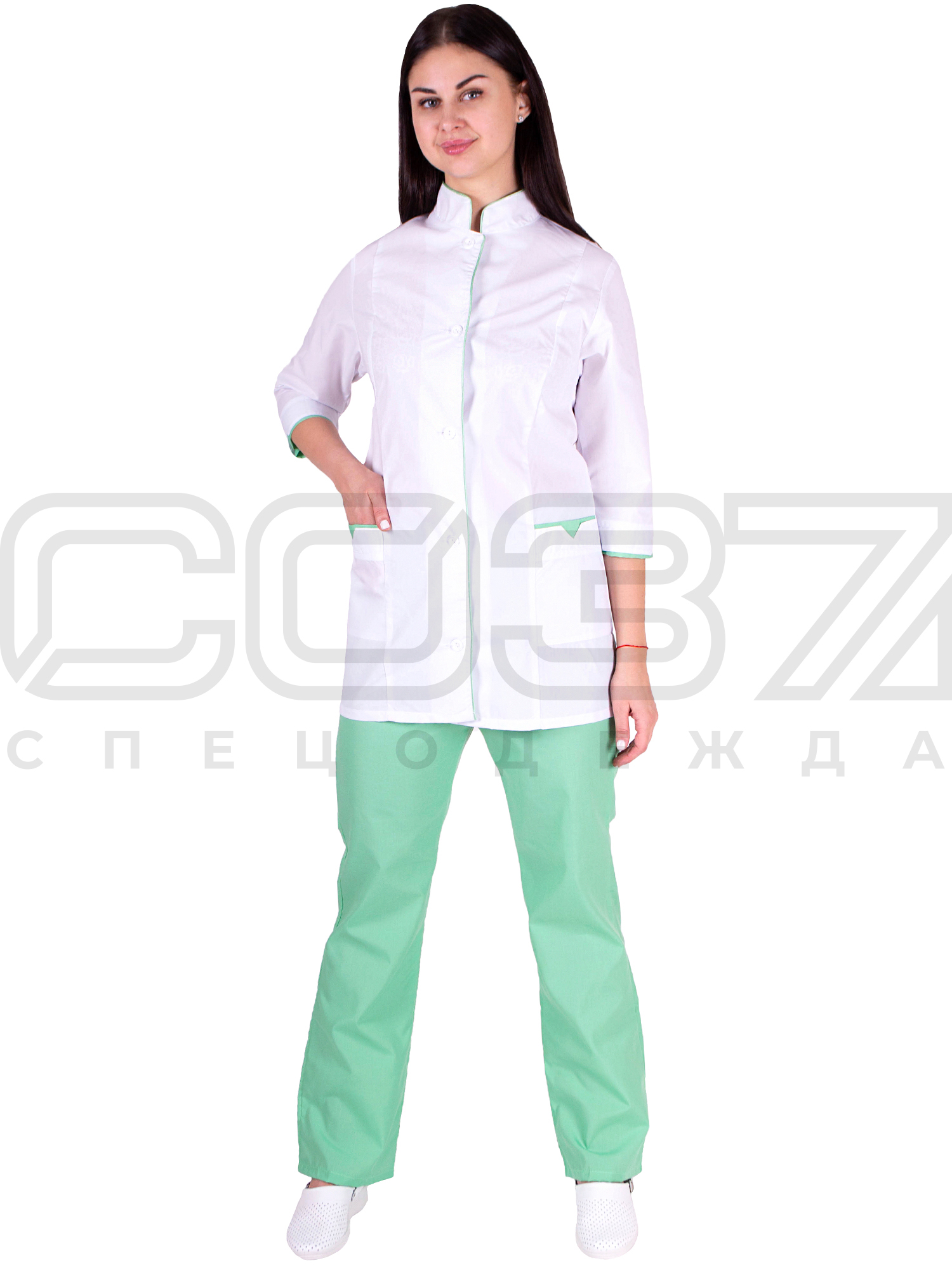 Костюм повара женский "Chef" цв.белый/зелёный тк.тиси в Екатеринбурге